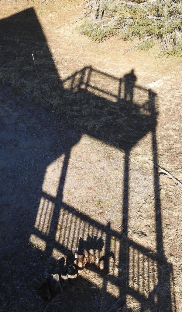 I took a photo this morning of the shadow of me in the “Raptor Roost.”