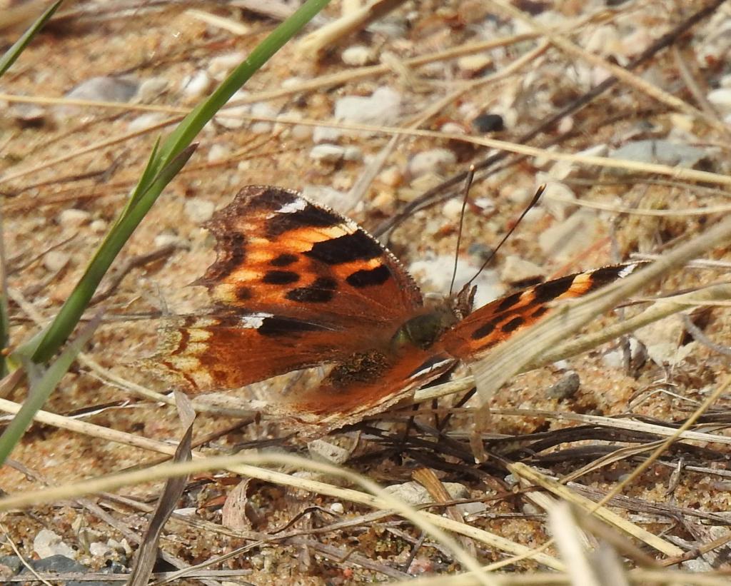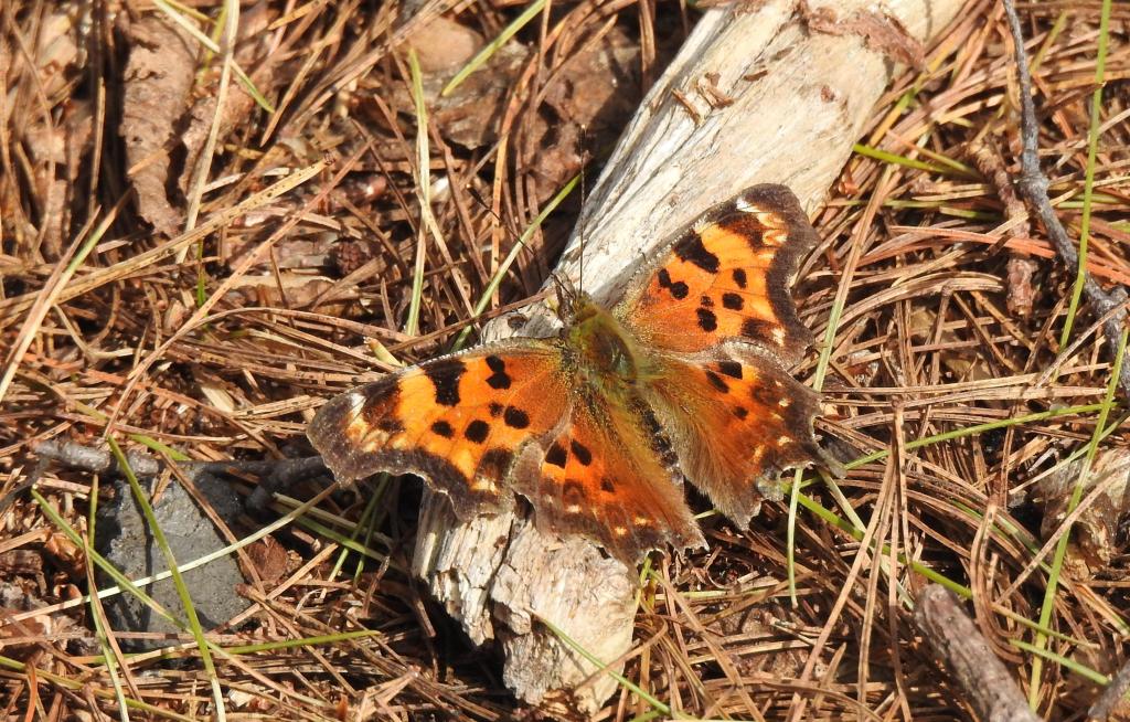 Butterflies are quite numerous. Comptons tortoiseshells, one on the left are quite common. Green commas, one on the right are never as common as Eastern commas.