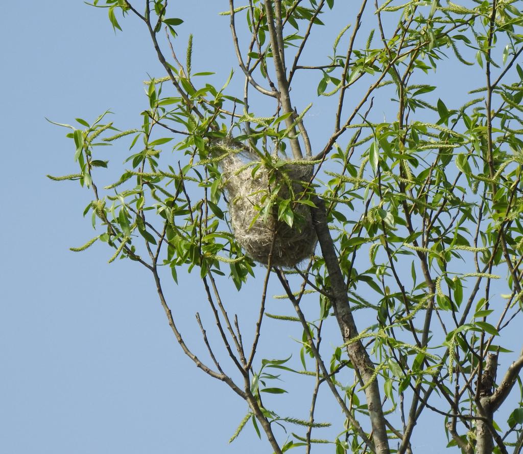 Susan spotted the oriole nest on the left. The birds have been busy. The male in the apple tree was stunning.
