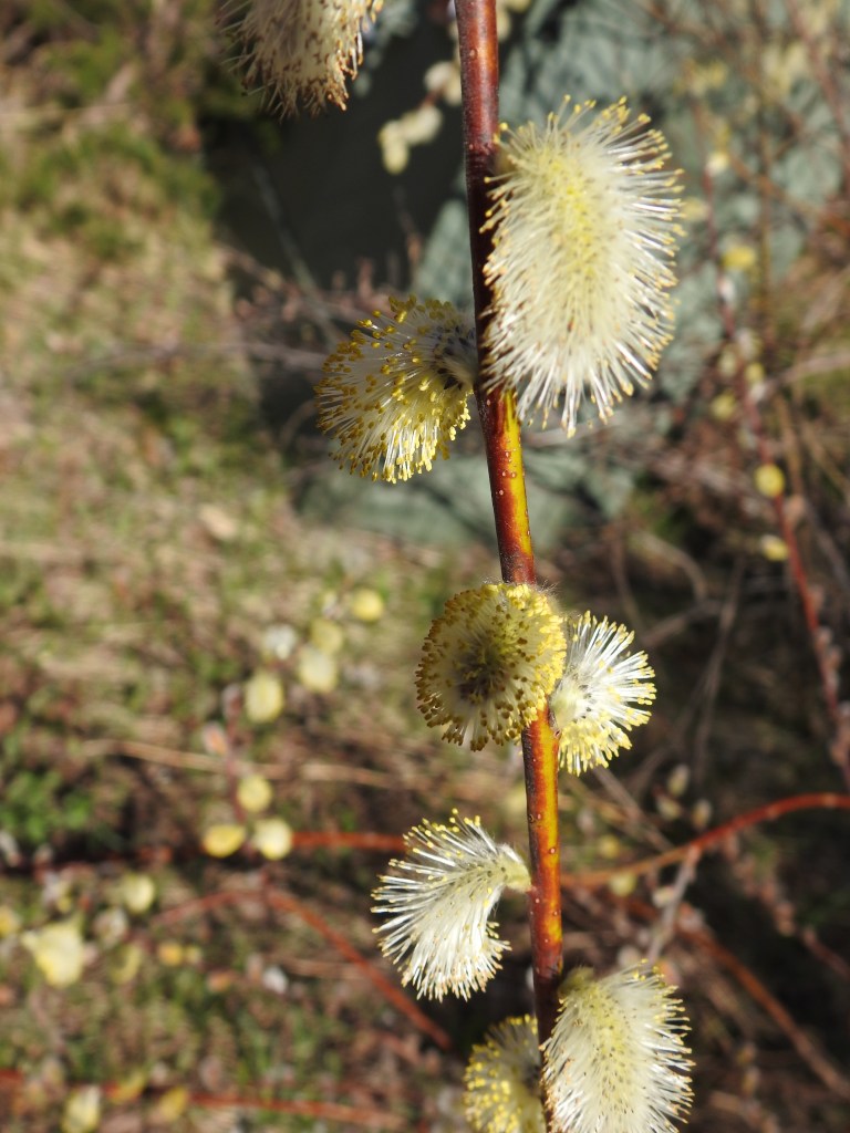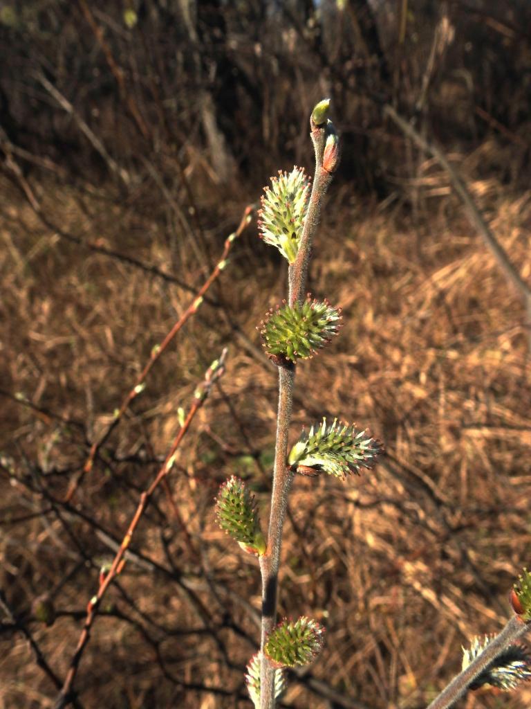 There are several species of willows flowering right now. I know that there are at least three like these – pussy willow, small pussy willow and Bebb’s willow. But I can’t tell them apart until they have leaves. Fortunately there is an excellent guide, with keys for differentiating them.