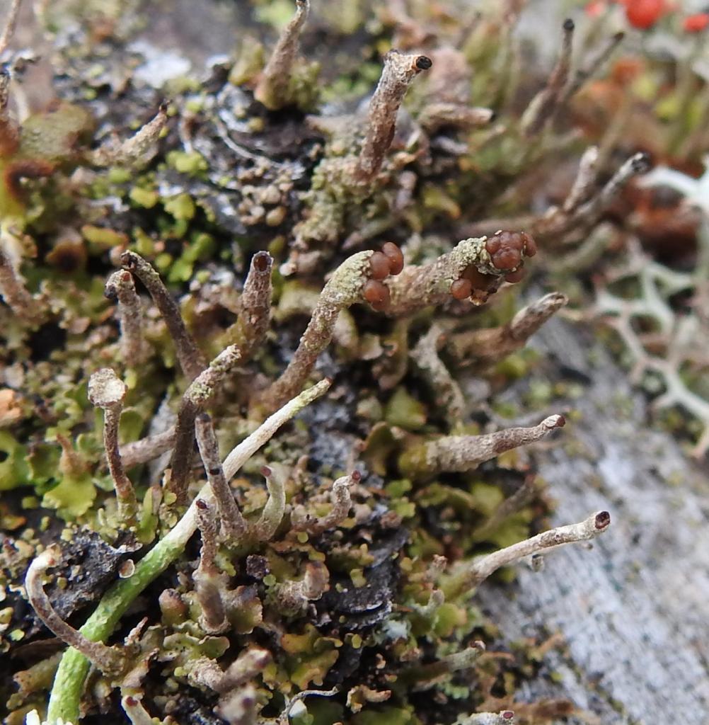 But then I was easily distracted by lichens like this little patch (perhaps 5cm x 5cm) of Cladonia. After lunch the sky cleared and we decided to go to Tahquamenon Falls.