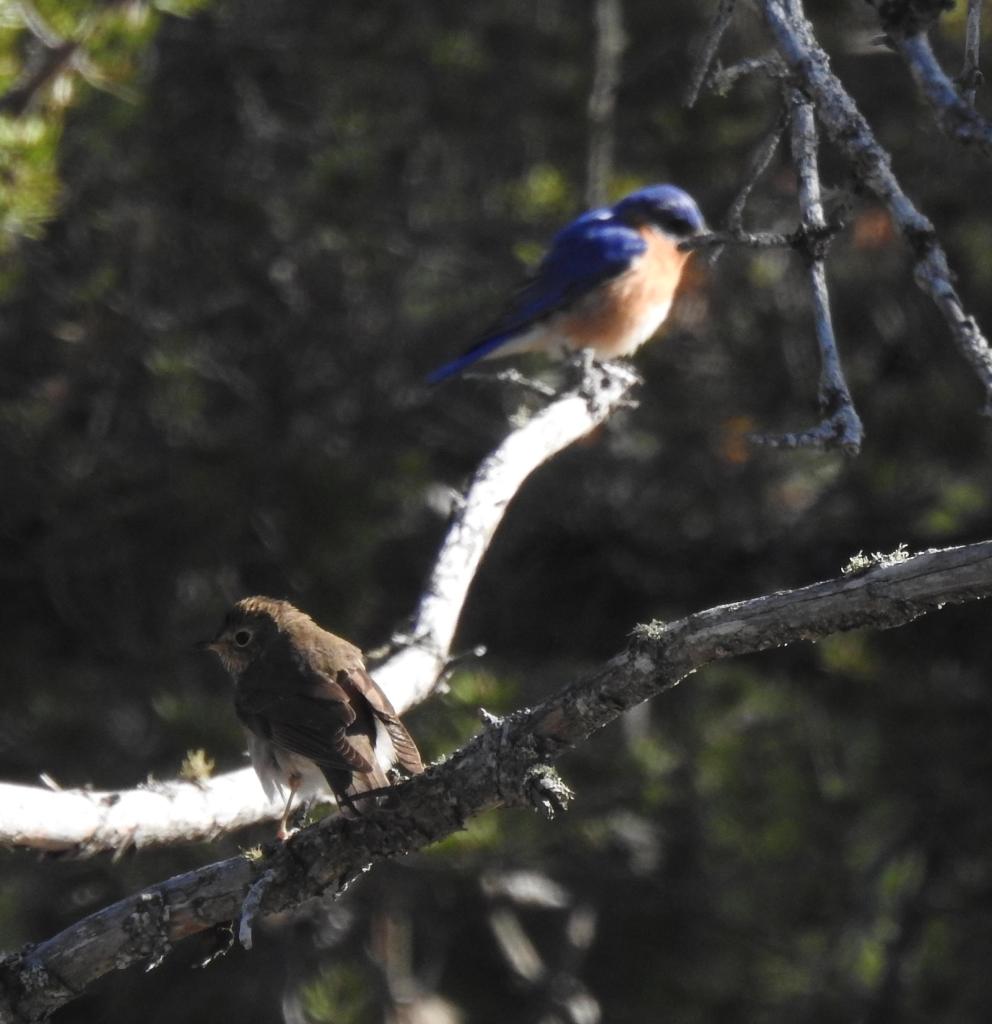 The road to the Whitefish Point was full of thrushes and warblers. This Eastern Bluebird was joined on the branch by a Swainson’s Thrush.