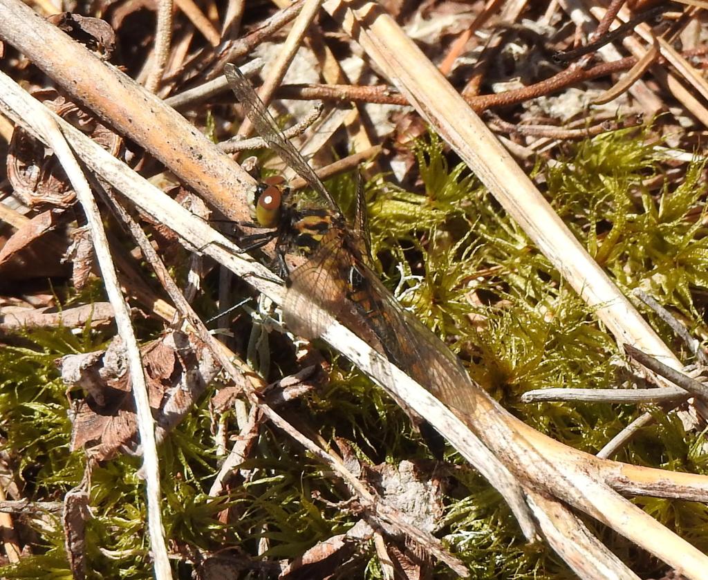 This is a Hudsonian whiteface (Leucorrhinia hudsonica) one of the first dragonflies to appear in the spring.