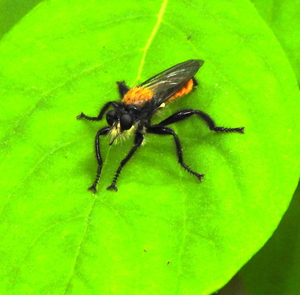 The right individual is a Gold-backed snipe fly. The one on the left is a robber fly that is a mimic of other flies.