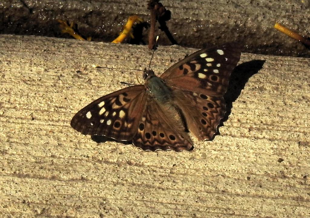 Traveling west across the state we made one rest area stop. There were no moths, but Susan found one butterfly. We each got to photograph what I am pretty sure is a hackberry emperor.