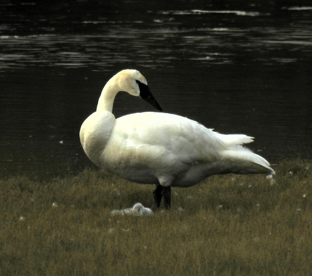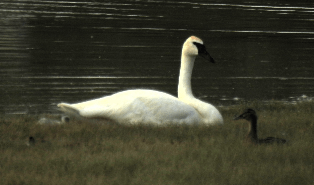 Here’s the whole Trumpeter Swan family. It’s nice being able to watch them from our deck.