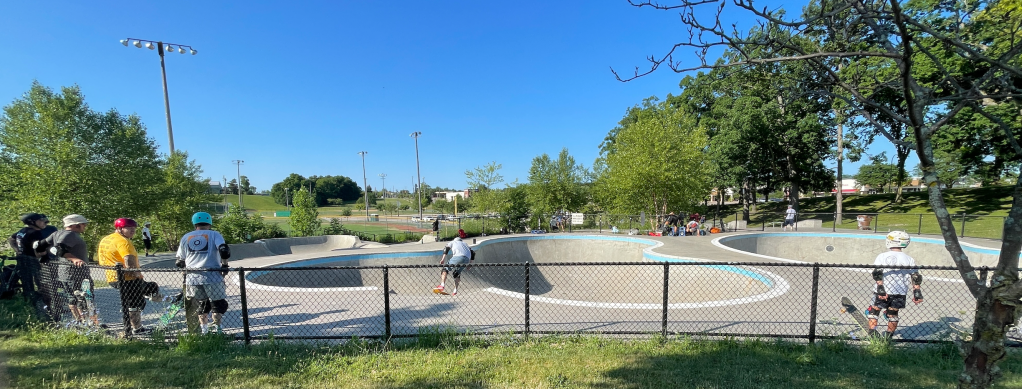 Today we walked to Village Kitchen for breakfast, then on to Aldi’s where we bought some veggies I needed for a project at home. After shopping we stopped at the Skate Park where we watched people on skate boards in the two big “bowls.” We also spent some time watching the teaching session for girls, which happens every other Sunday.