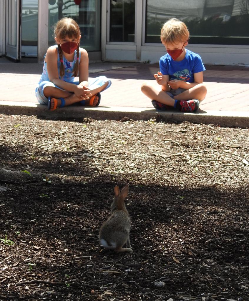 The kids found a bunny at the main post office.