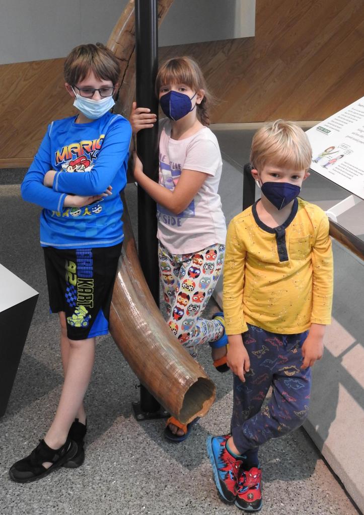 Camilla, Oscar and their cousin Isaac riding a puma outside of the museum.