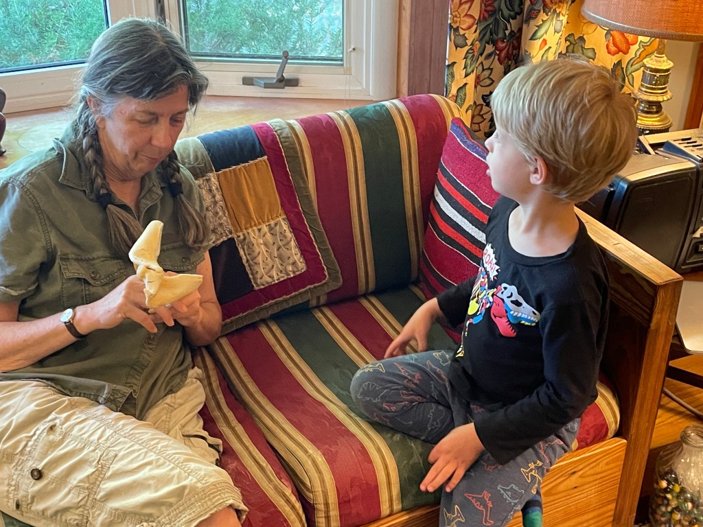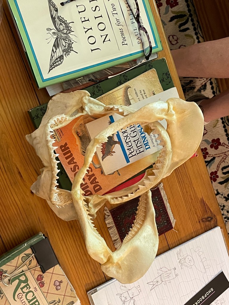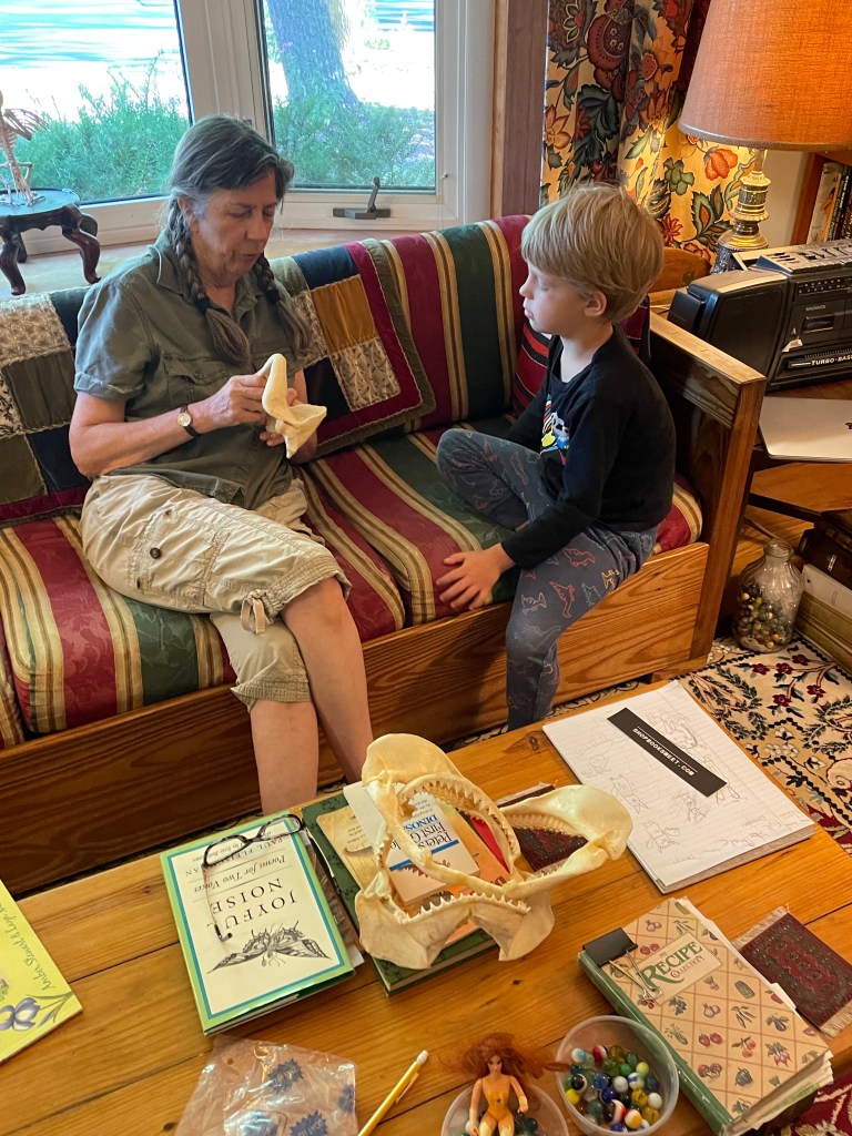 Susan then showed Oscar some shark jaws that we got in Mexico. He was quite intent on listening to and watching what Susan was saying.