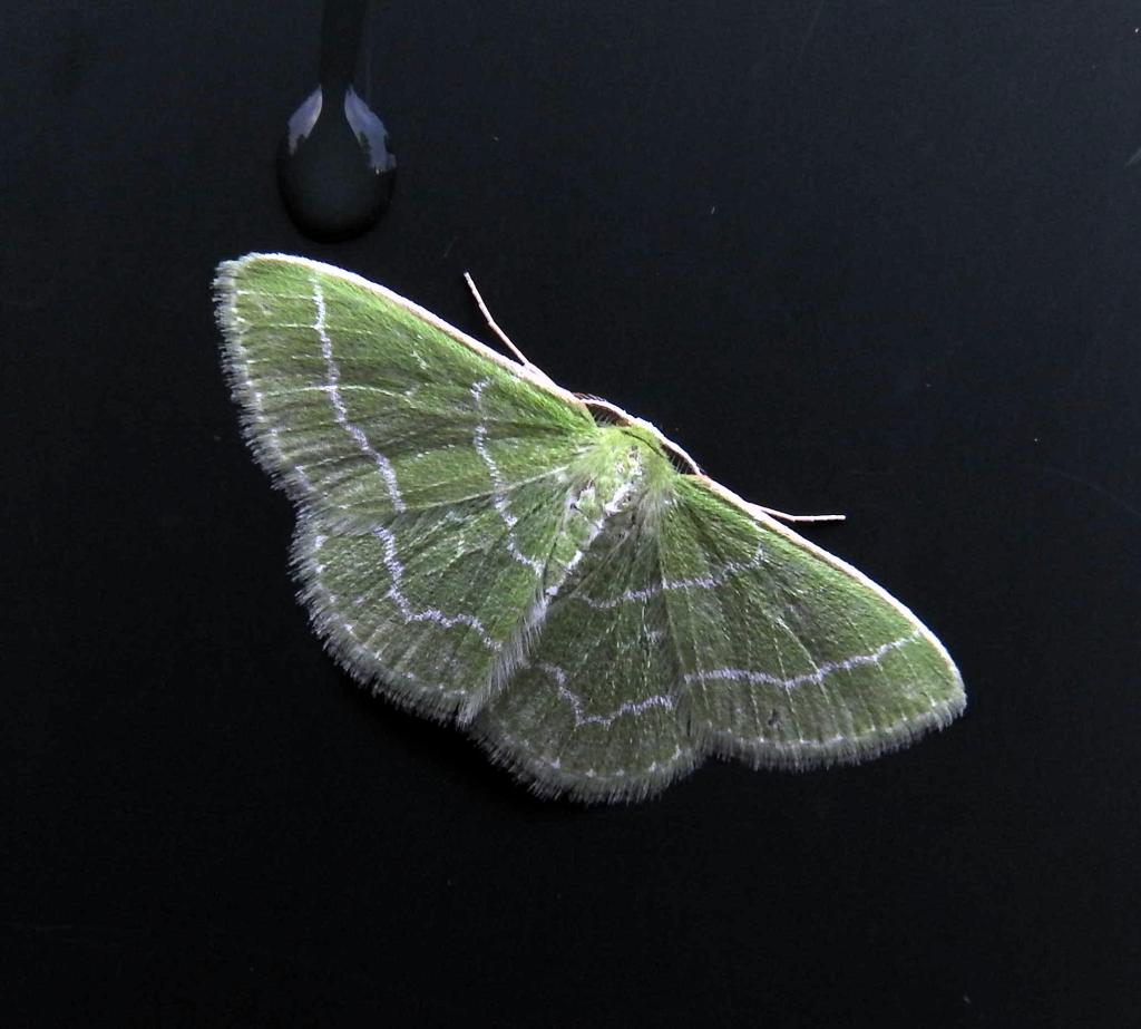 Started the day with a few moths. Jack pine budworm is obviously a pest of jack pines, which surround us at Whitefish Point. The green-colored wavy-lined emerald is less of a pest, and more uncommon.