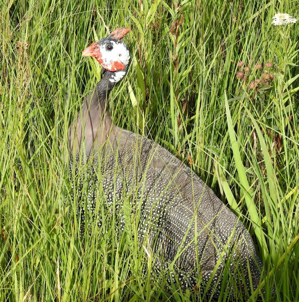 On the south side of Paradise I would have never expected seeing helmeted guinea fowl. But there were four feeding on the side of the road.