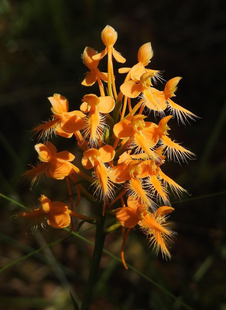 Here’s an explosion of flowers, an orange-fringed orchid. I’d rather think about this beautiful flower than the sins of the past.