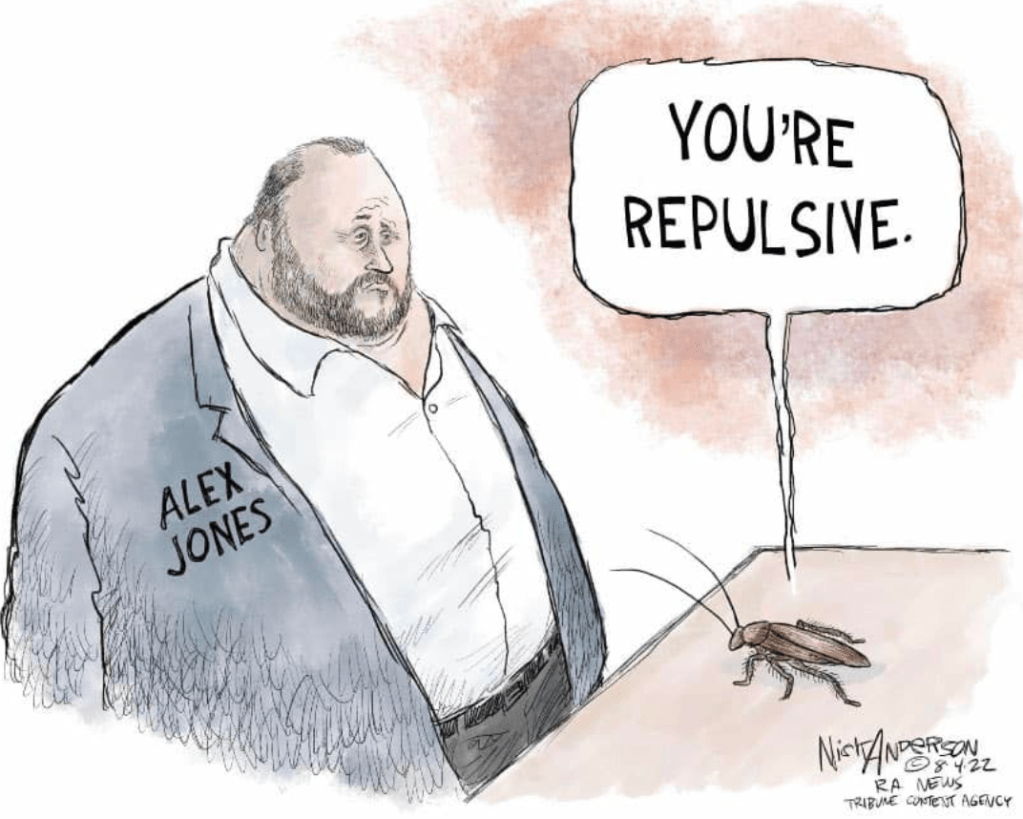 Some cartoons to start a lazy day. Not even a cockroach likes Alex Jones.