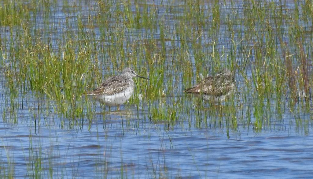 Shorebirds are starting to head south already. Yellowlegs are here as are Calidris sandpipers. It’s hard to identify the sandpiper from this view.