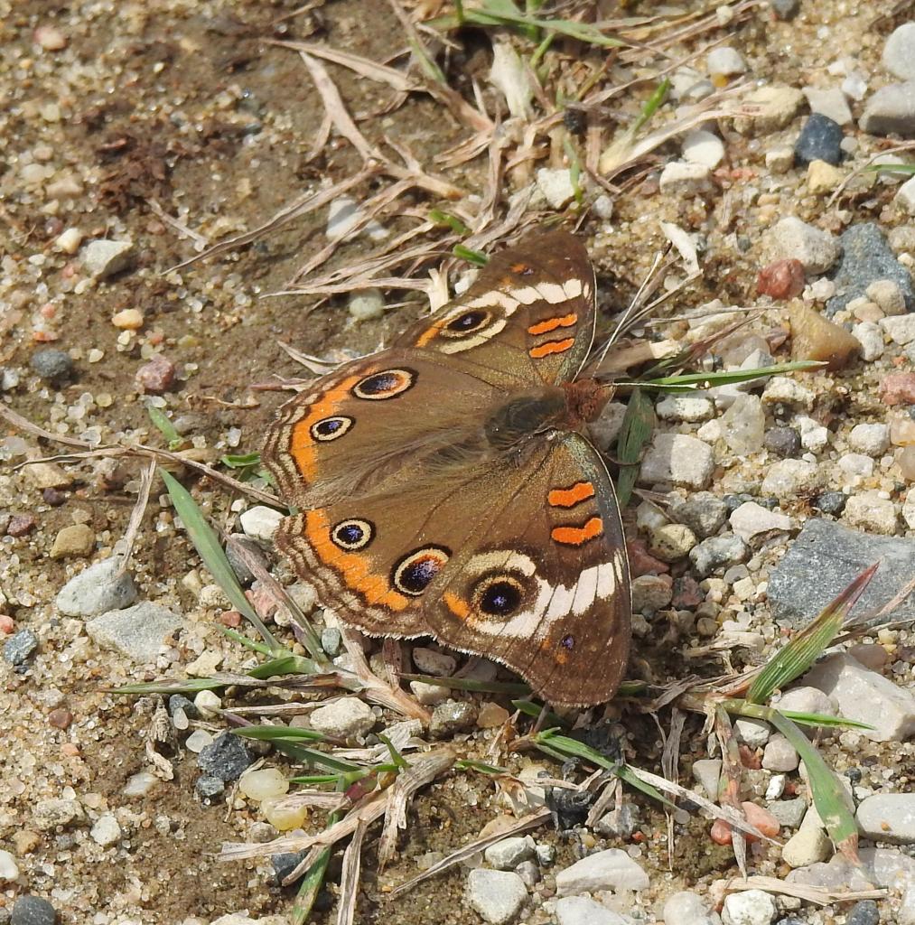 A Northern pearly eye on the left and a very fresh Common Buckeye on the right. Lots of skippers around, but trying to see them well enough to identify has been difficult.