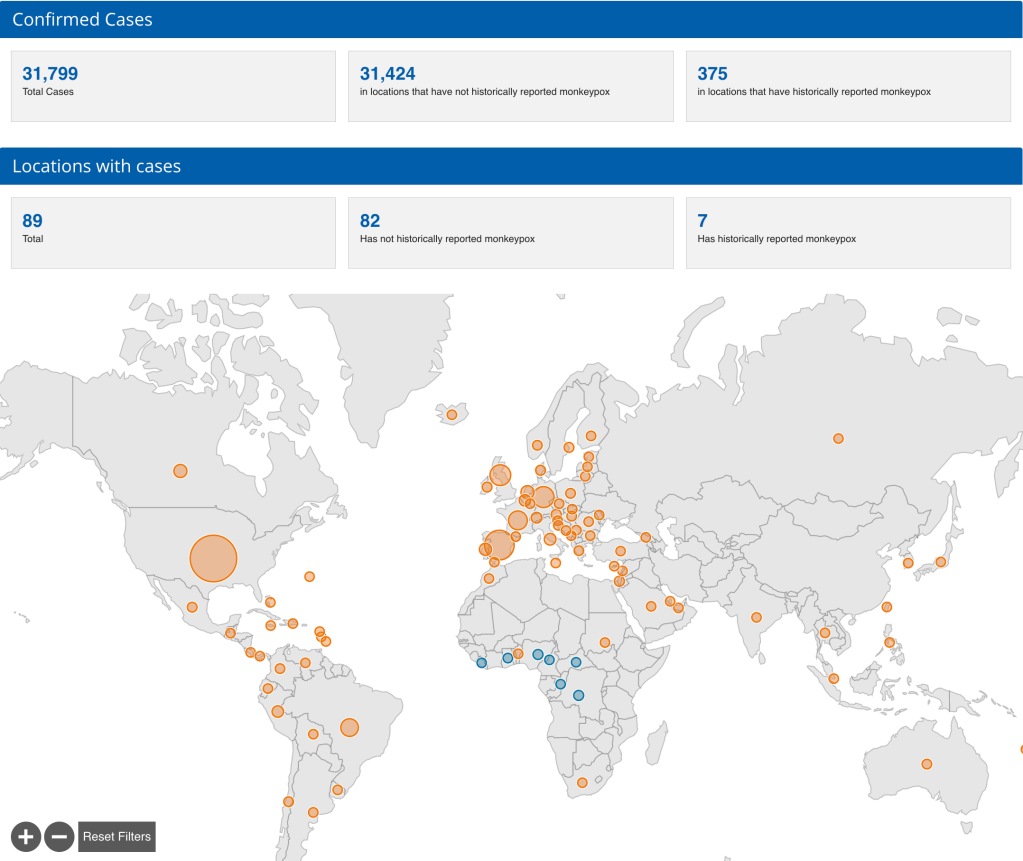 The most recent CDC reports on monkeypox show increased numbers on a global basis.