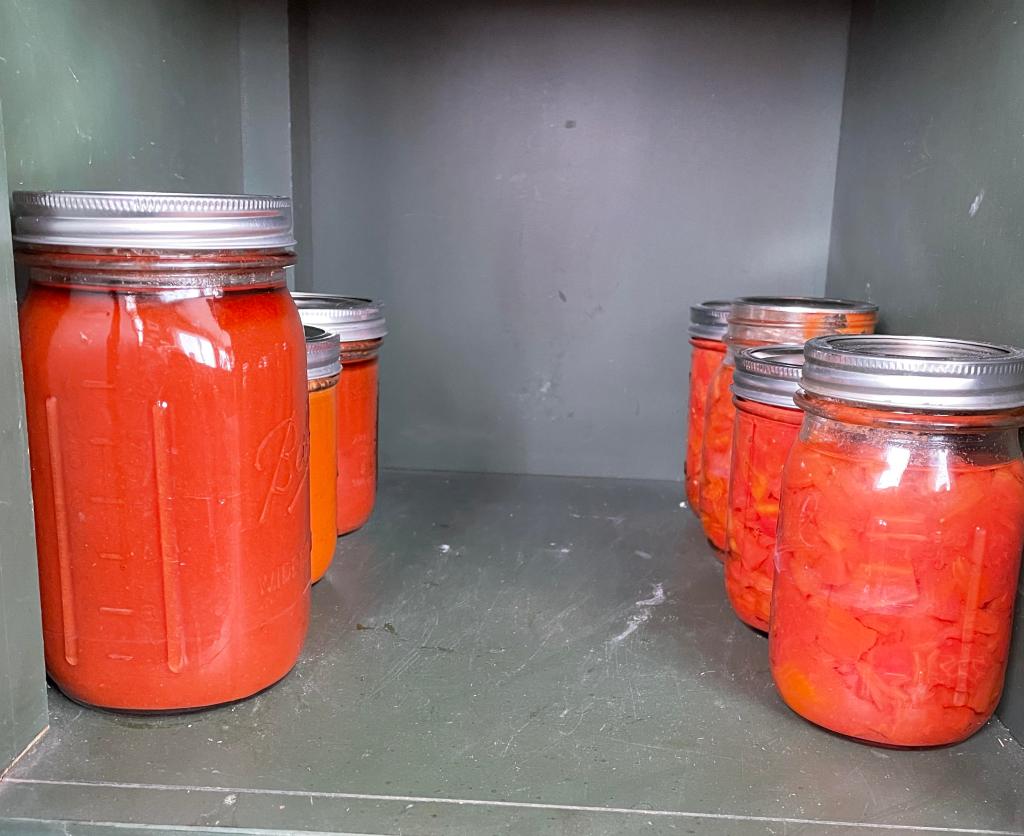 The pantry is nearly empty. A few jars of tomato sauce and diced tomatoes. It’s time to use some of what’s in the garden.