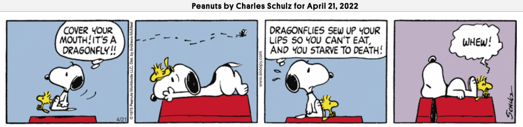 Unlike Snoopy and Woodstock I am hoping to see a few “late season” dragonflies at Whitefish Point.