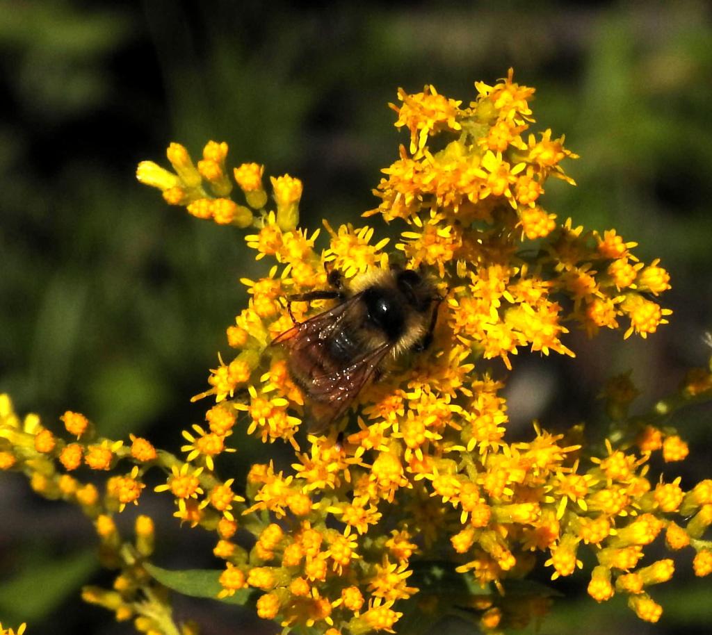 Everybody knows Yellowjackets, but how many know the Blackjacket? It’s not uncommon. Like many insects it was feeding at goldenrod flowers.