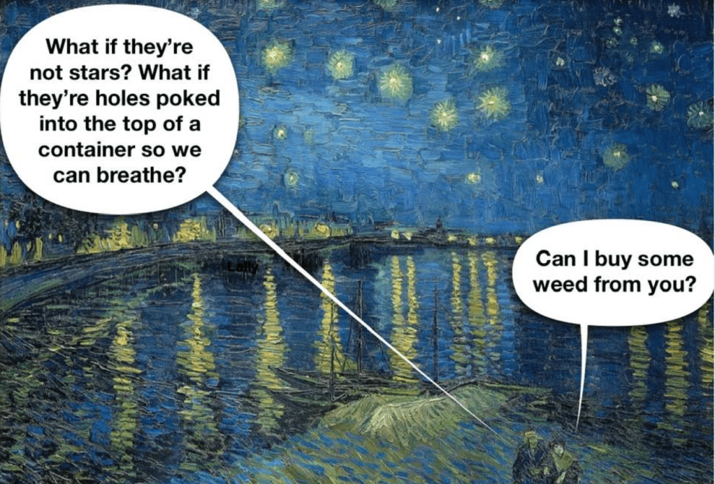 Ah, weed. I’ll have to do another post on the cannabis as we pass new signs every time we’re on the freeway. And now for some “colorful” humor.
