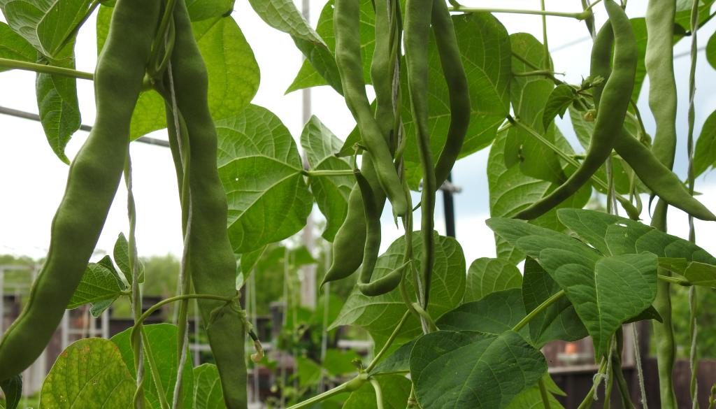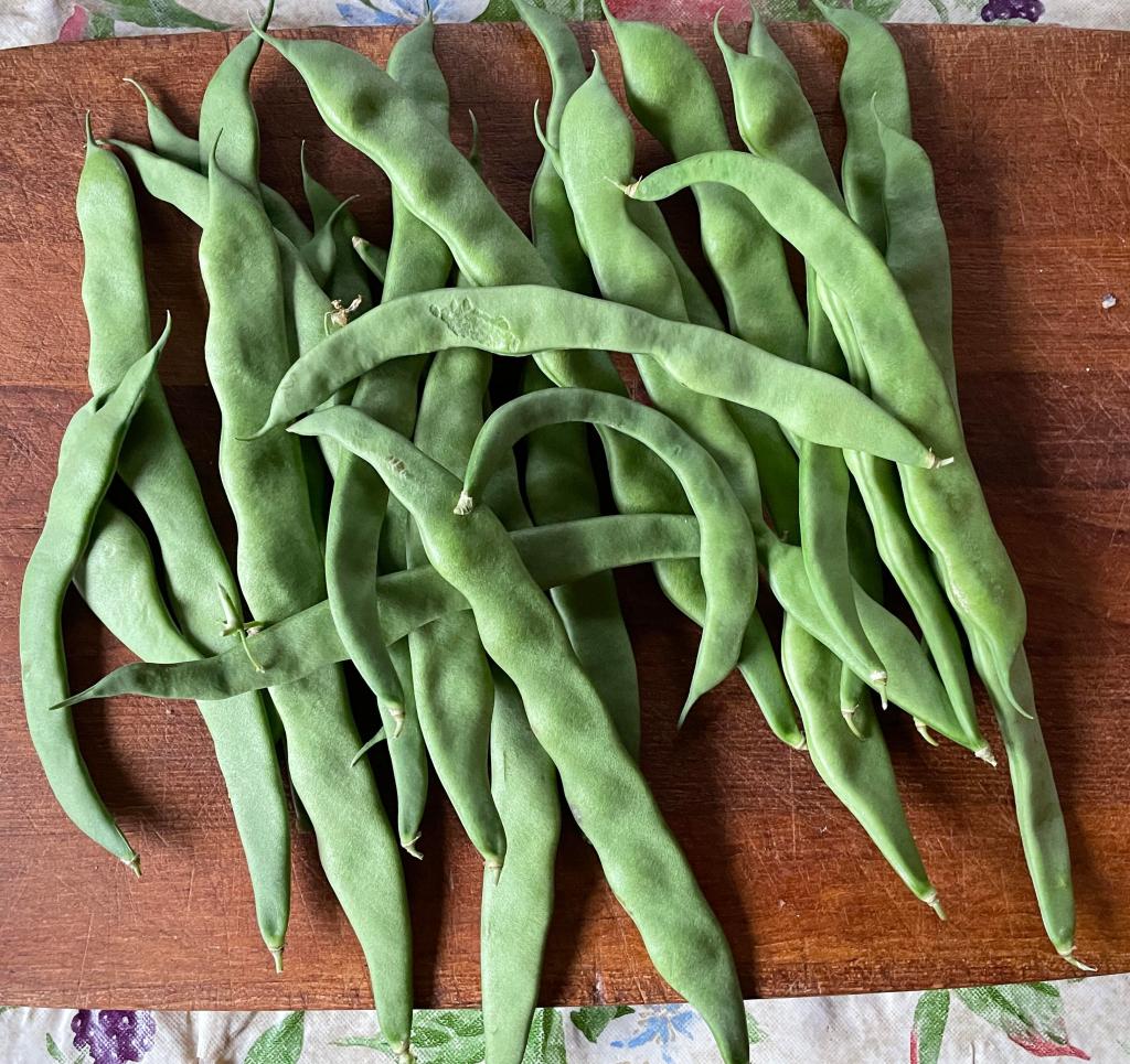 Probably three meals of flat beans on the first picking. There are many more to come.