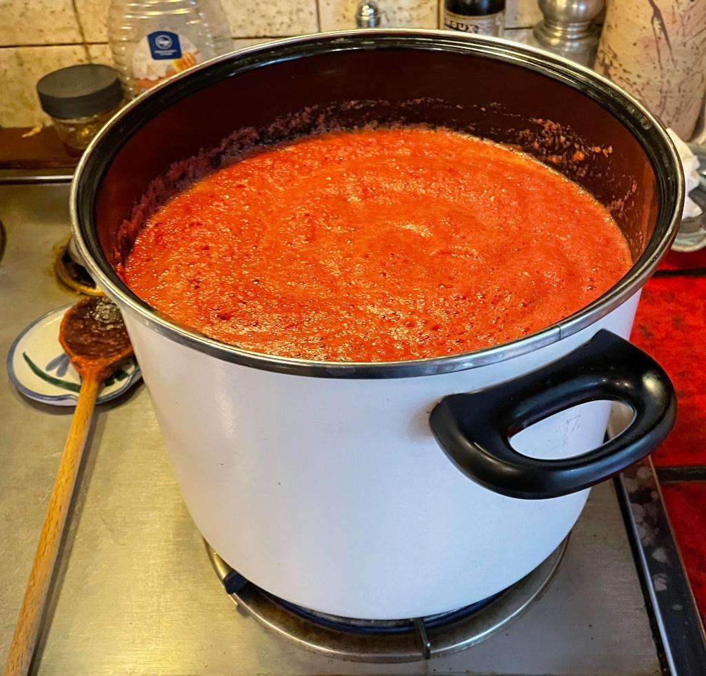 Wave goodbye to other activities. Today I picked tomatoes, beans and peppers. It took several hours just getting the tomatoes processed and ready for canning.
