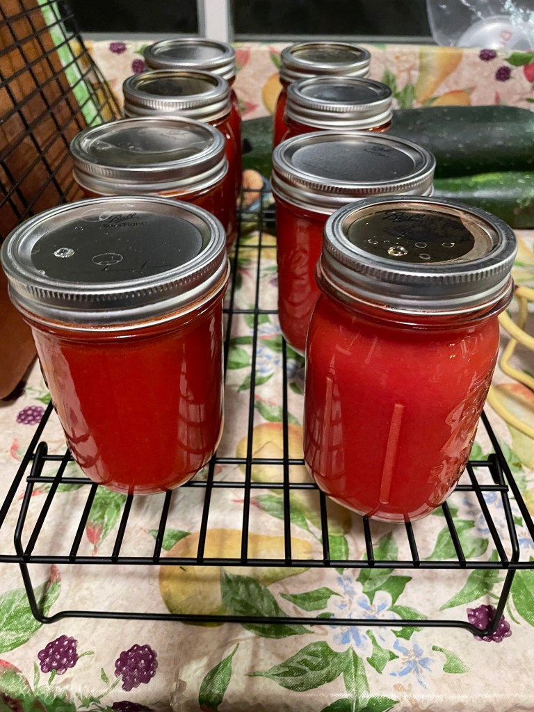 And now eight more pints waiting to cool before going into the cupboard. Tomorrow will be a day for making pickled cucumbers, kimchi and giardiniera.