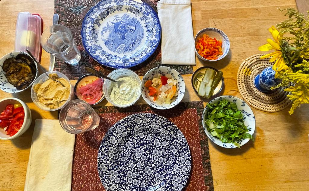 Yesterday afternoon I went to get a flu shot and found out that I could also get the latest bivalent covid booster. I got them both. Last night I was a bit slower than anticipated. Today I am achy, cold and decidedly slowed by the two vaccines. Susan made a delightful dinner. She made fresh humus and we had pita with lots of veggies and falafel from the farmers market.