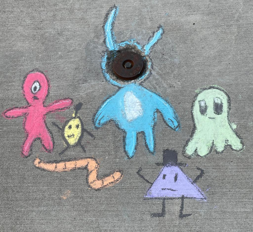 A new sidewalk chalk drawing appeared on the street. Somebody had fun doing this.