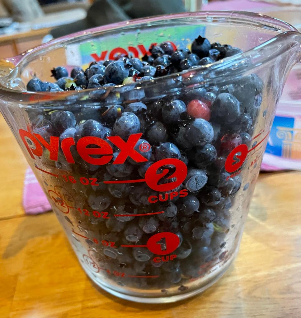 The other day Susan made sausage-kale soup, while I picked more blueberries, this time I managed three cups. I’m seeing more blueberry pancakes in my future.