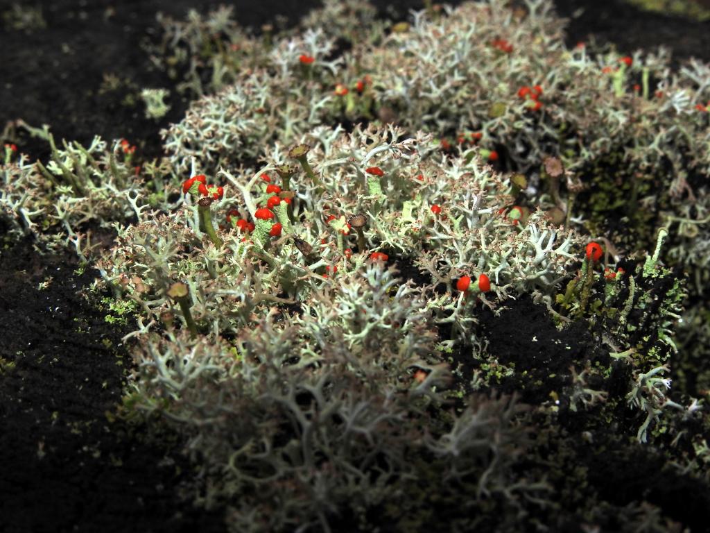 Outside the lichens were glowing in the early morning light. This is a stump along the driveway that had no lichens ten years ago. Now it has a thick mat covering the top.
