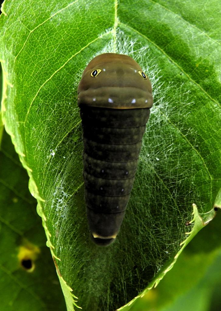 This large caterpillar is a Canadian tiger swallowtail. It’s just starting to spin a cocoon where it will spend the winter.