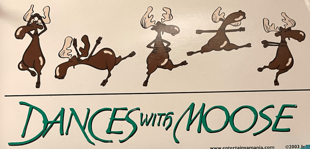One of Susan’s favorite bumper stickers. She has this in her home office and she also has a coffee cup with it. Celebrate like the moose!
