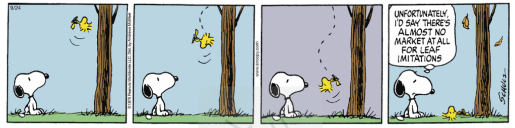Poor Woodstock, he did such a nice job imitating a falling leaf. That’s important in the Fall.