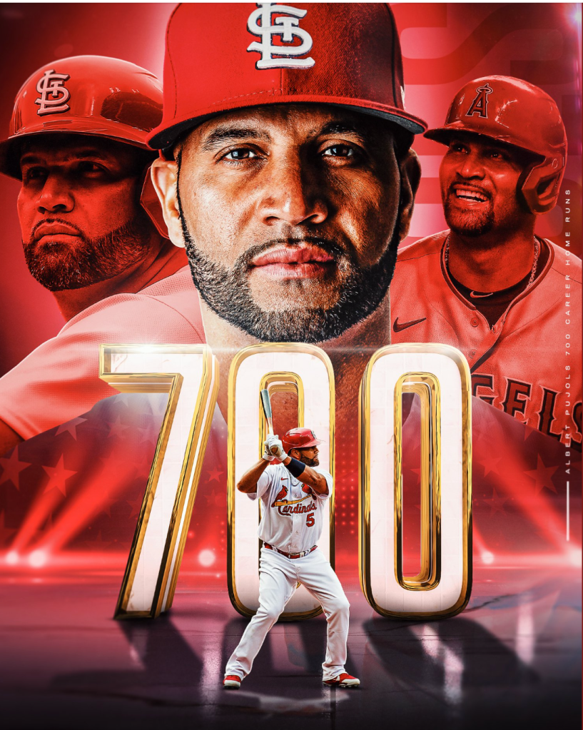 Yesterday Albert Puljos became the fourth (and third legitimate) player to hit 700 home runs.