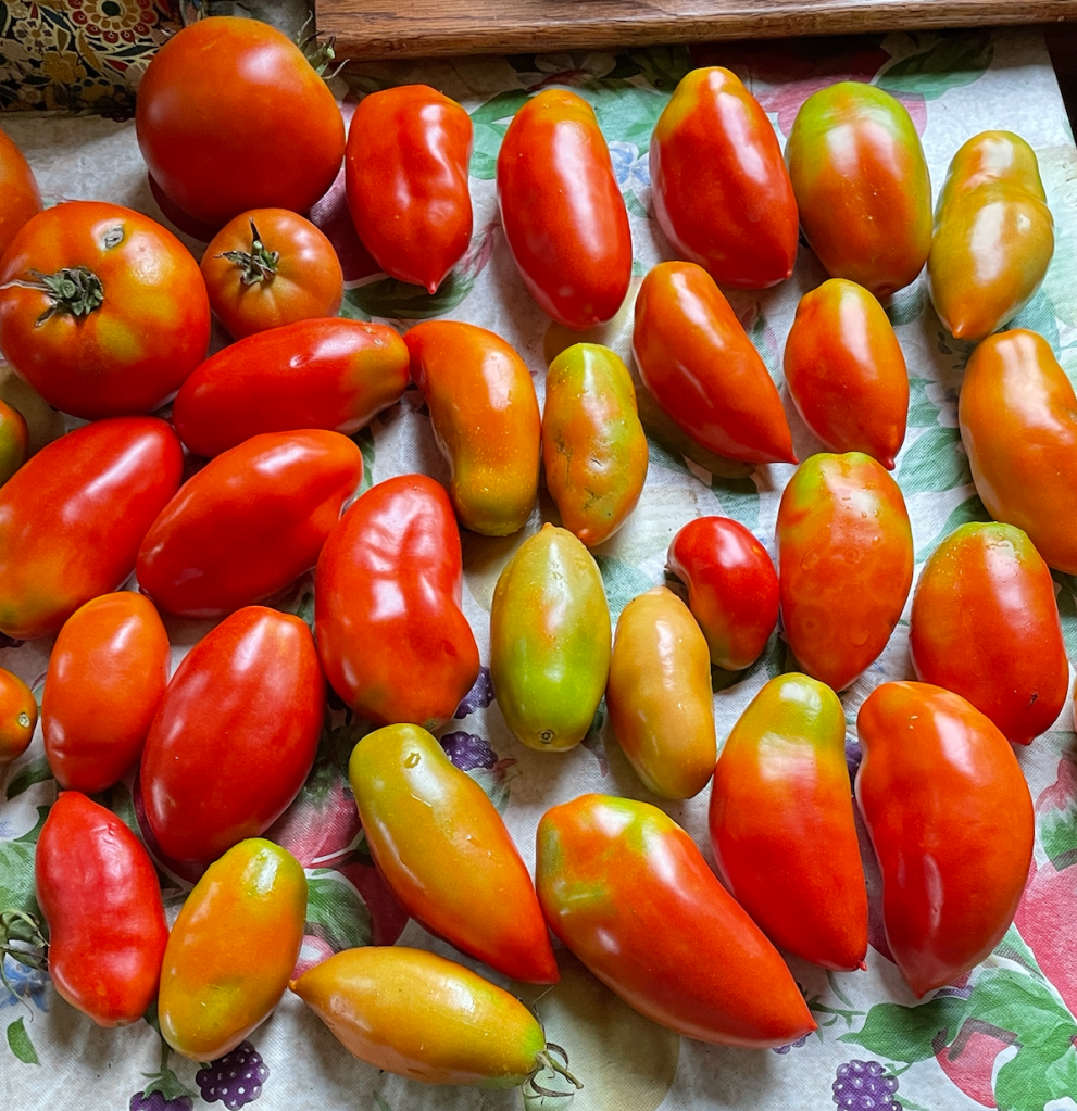 Some of the last tomatoes on the table by a window. Some tomatoes fell from their vines and will sit and ripen for the next week. And with the temperatures falling (it is Fall) we’ll probably be picking most of the remaining vegetables (tomatoes, green beans and hot peppers).