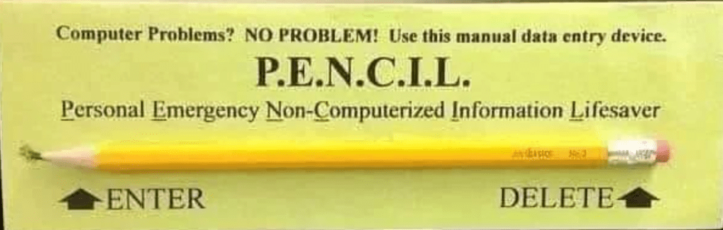 Over the years I have gone through so many of these manual data entry devices. Students would laugh when they came to my office and saw a cup filled with sharpened #2 pencils. Additionally, the number that I have used down to stubs drawing is amazing. I still have enough to last for 8-10 years, since I hadn’t done any drawing for quite some time. Who knows, that might change as I work on Inktober drawings. BTW, the next batch will be posted on Monday and Wednesday next week.
