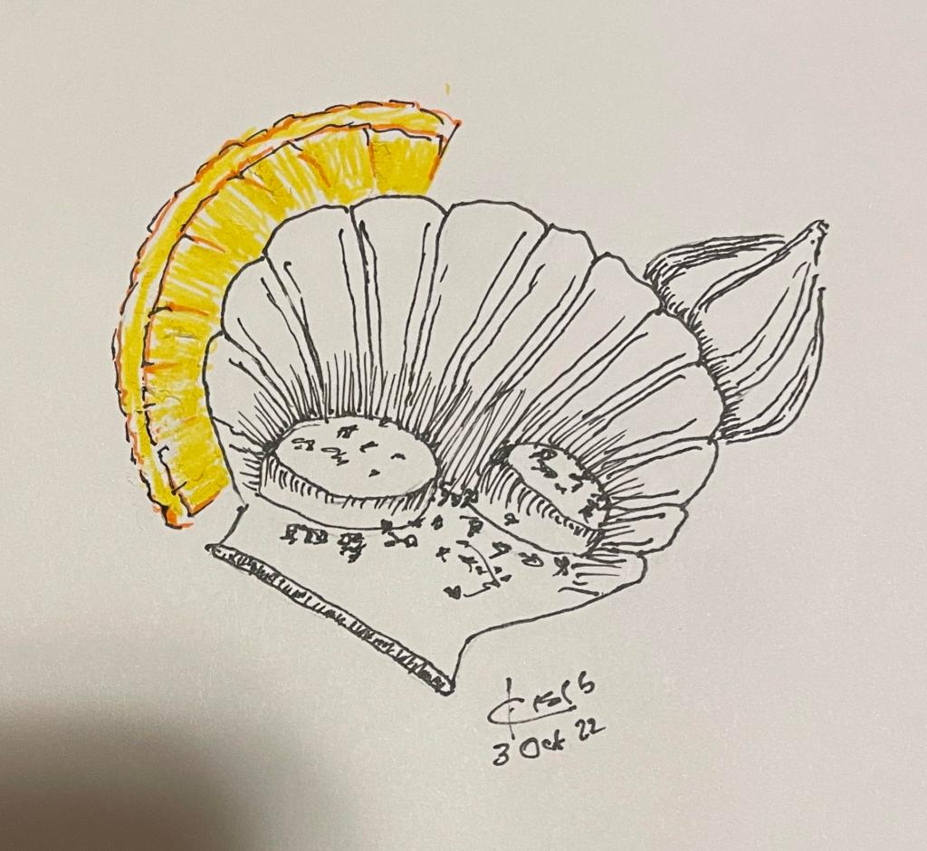 October 4th the theme was scallop. My question is dinner or a shell? So, my feeble attempt at combining dinner with a meal, including lemon and garlic.