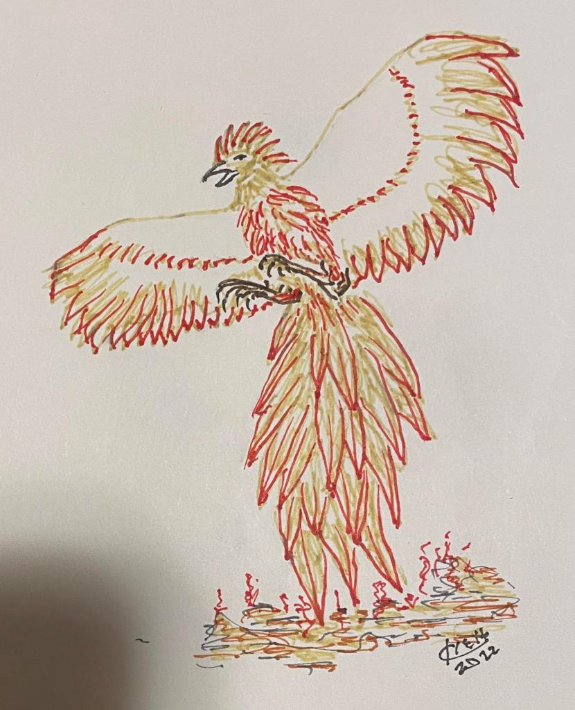 October 5th theme was flame. I tried several ideas and settled on a Phoenix rising from the ashes.
