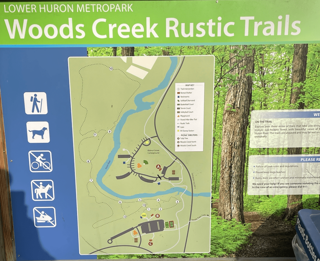 At Lower Huron we decided to walk the Wood Creek Rustic Trails. This nice trail had a lot of nice trees. It had a distinct Carolinean Forest feel. There were hickories and oaks, but also hackberry, tuliptree, American bladdernut and other trees.