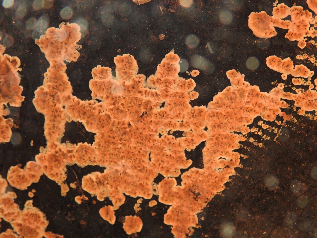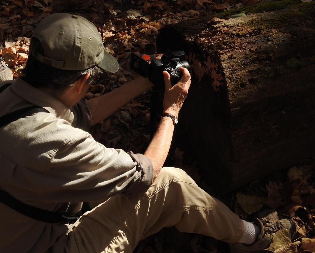 Susan photographing a fungus on the left. My photo of the fungus on the right.
