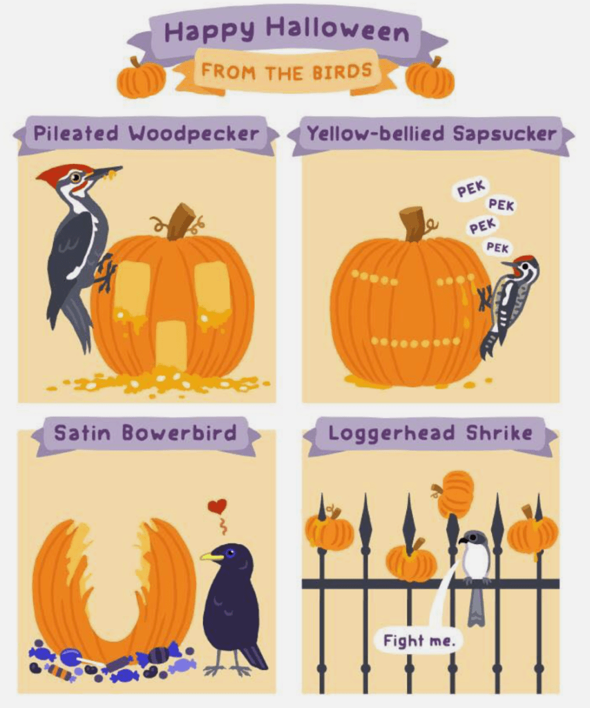 If birds celebrated Halloween and were in charge of the pumpkins.