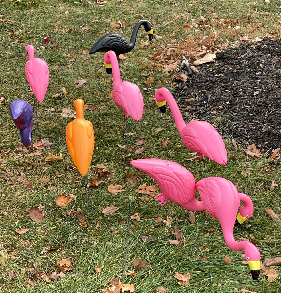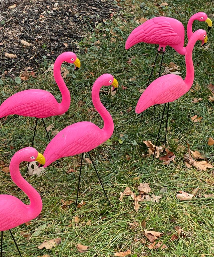 Oh-oh, somebodies yard got “flocked.” A nice little hoard of flamingoes.