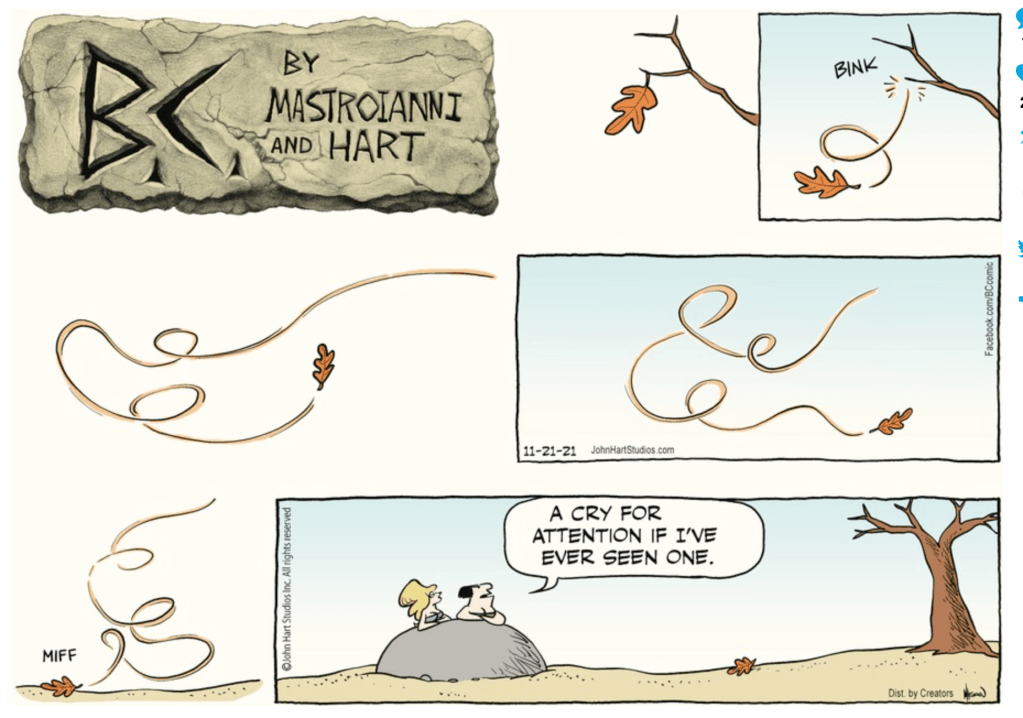 Oh no, that pesky last leaf crying for attention. Now, compare this BC comic with the Wizard of Id below.