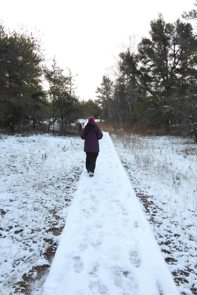 Our walk to the point today was snowy, cool (30F) and with a few birds – mostly American Goldfinches.