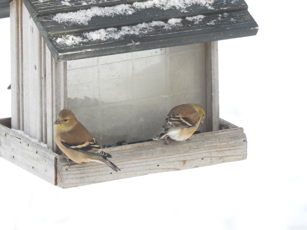 Initially goldfinches and chickadees were the first birds at the all you can eat buffet.