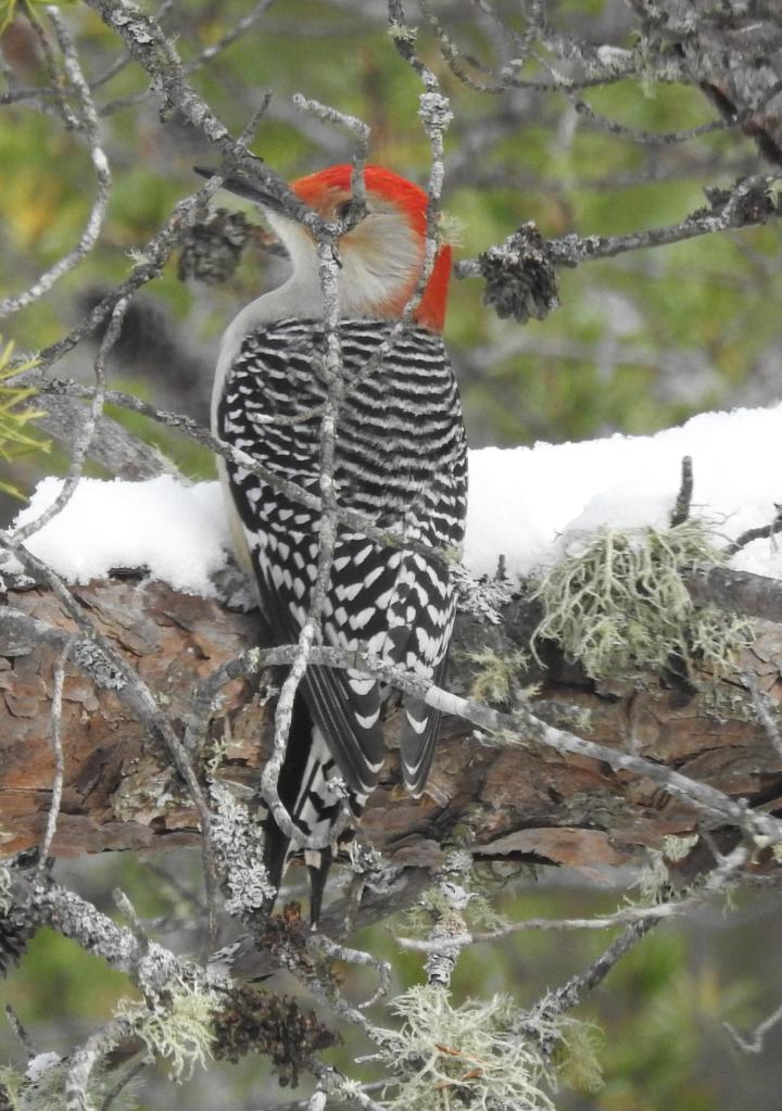 Then our first woodpecker was a Red-bellied Woodpecker. When we first built the cabin these were quite uncommon or rare. Now we see them every year and every season.
