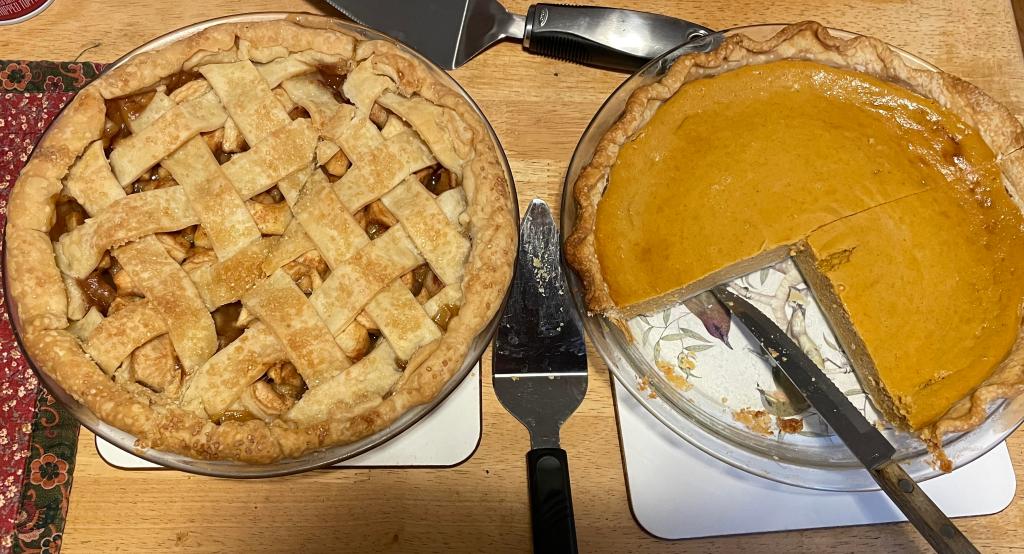 Susan also baked two pies! Apple on the left and pumpkin on the right.