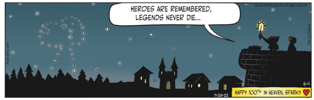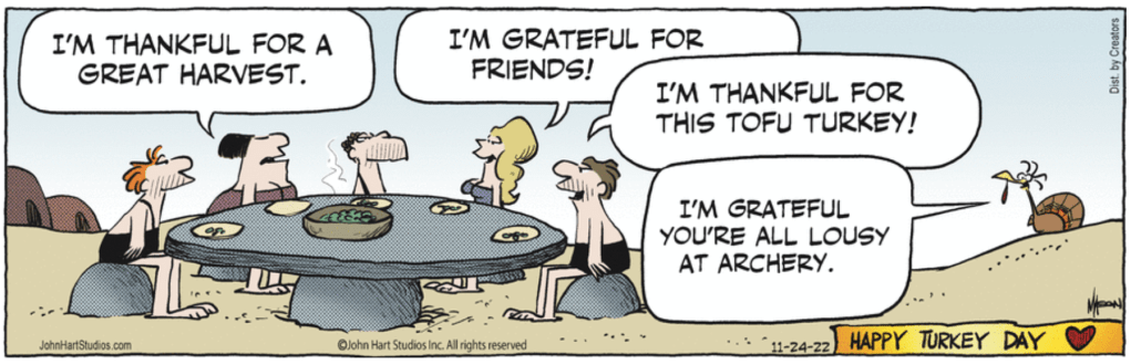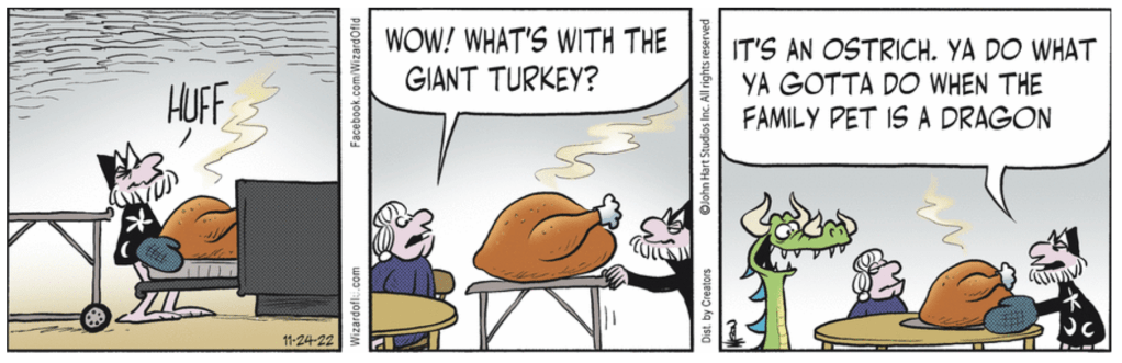 Thanksgiving dinner with the Wizard of Id and his pet dragon.